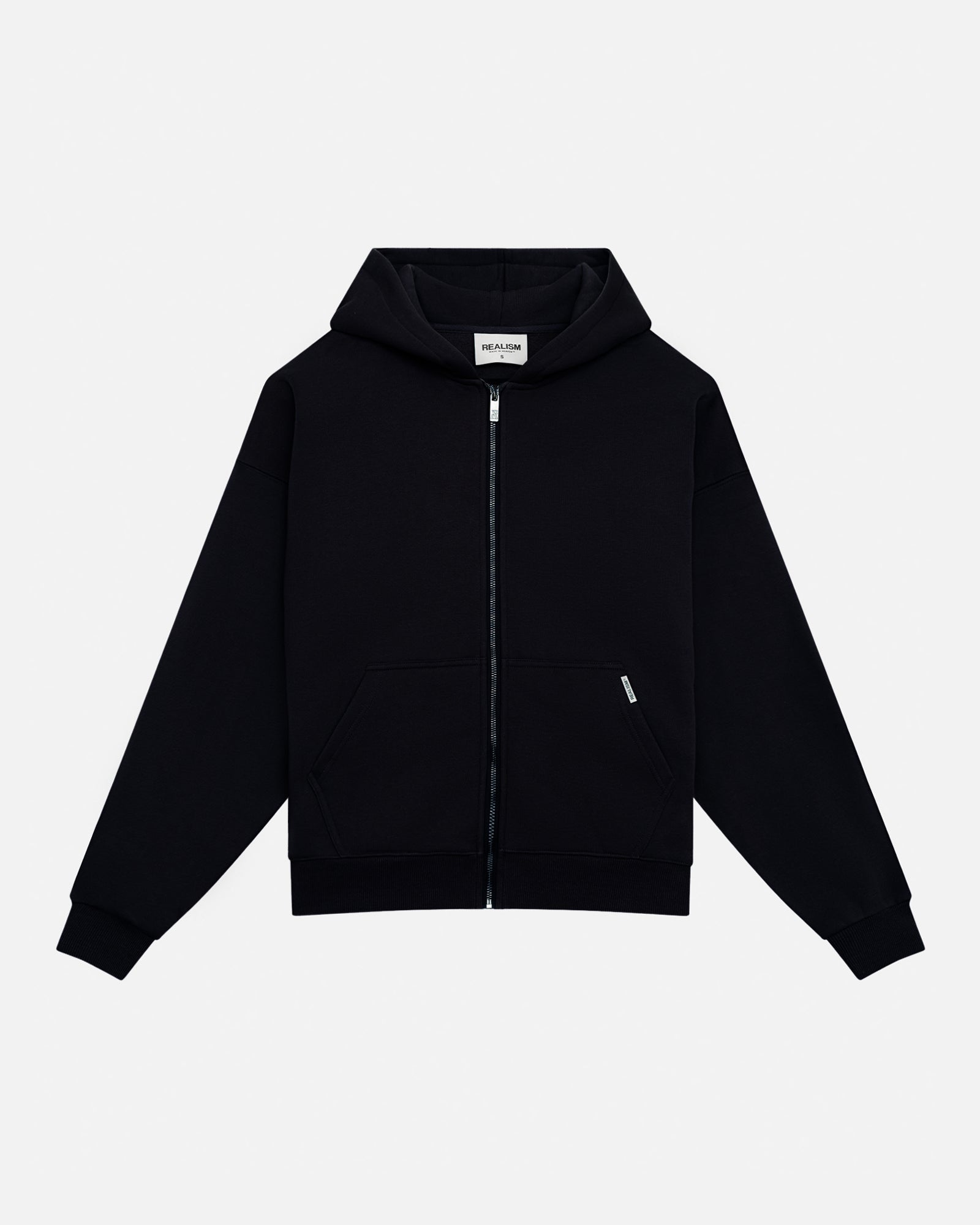 Crafted for everyday essentials, the Core Basics Zip Hoodie in Black is a refined take on minimal streetwear. True to size with a boxy fit, this piece is built using our signature 350gsm fleece. Soft, structured, and made for daily comfort. It features a custom metal logo clamp on the kangaroo pocket and a clean, logo-free finish throughout for an understated look.