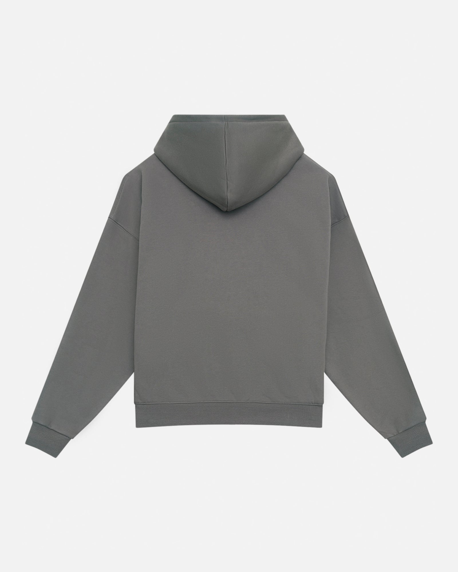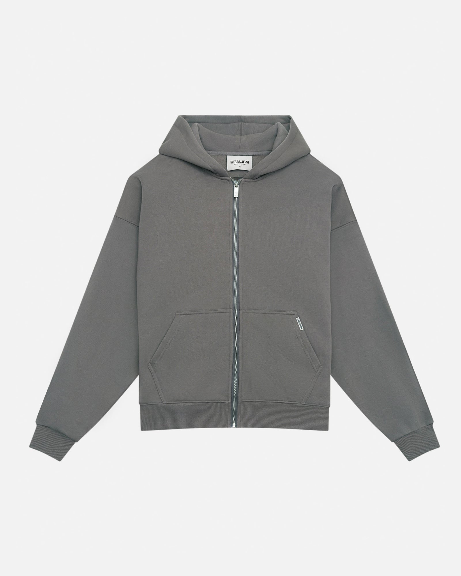 Crafted for everyday essentials, the Core Basics Zip Hoodie in Cool Grey is a refined take on minimal streetwear. True to size with a boxy fit, this piece is built using our signature 350gsm fleece. Soft, structured, and made for daily comfort. It features a custom metal logo clamp on the kangaroo pocket and a clean, logo-free finish throughout for an understated look.
