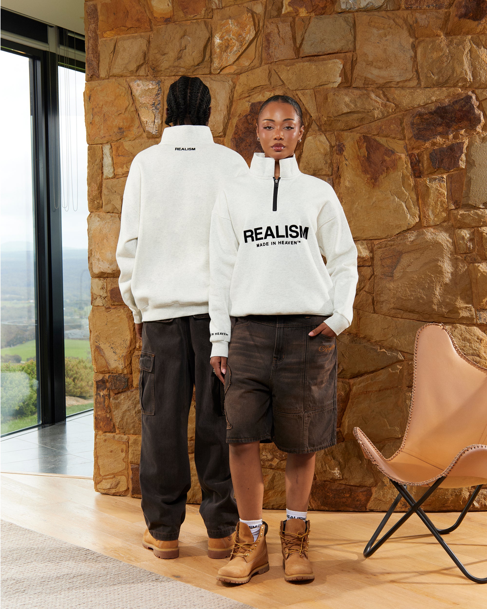 Get that effortlessly chilled vibe on point with the Elite Half Zip Sweater in asphalt. Featuring an oversized fit, vintage feel, zip front. Style with a pair of bike shorts for ultimate comfort.