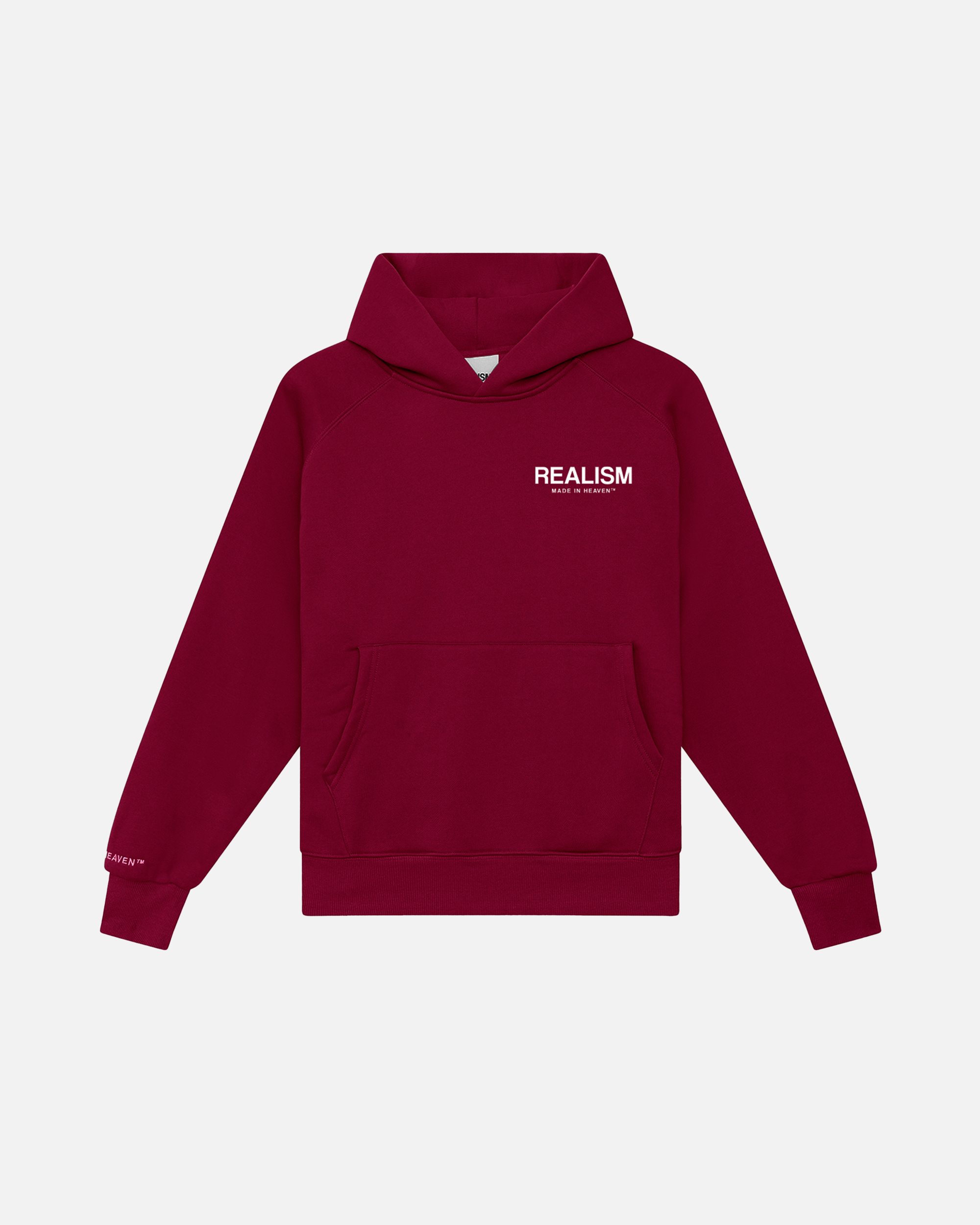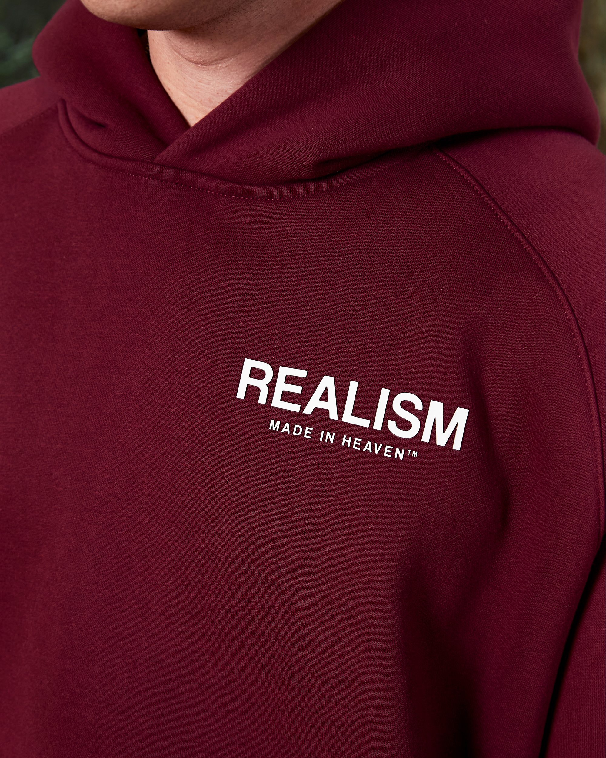 The ultimate hoodie. Premium, comfortable, and designed with purpose. Featuring Realism's signature 350 GSM fleece crafted into a raglan, oversized silhouette, this hoodie is accentuated with 3-dimensional silicone applique logos on the front and back. An embroidered "R" logo on the hood and a "Made in Heaven" motif on the right sleeve complete this iconic design.
