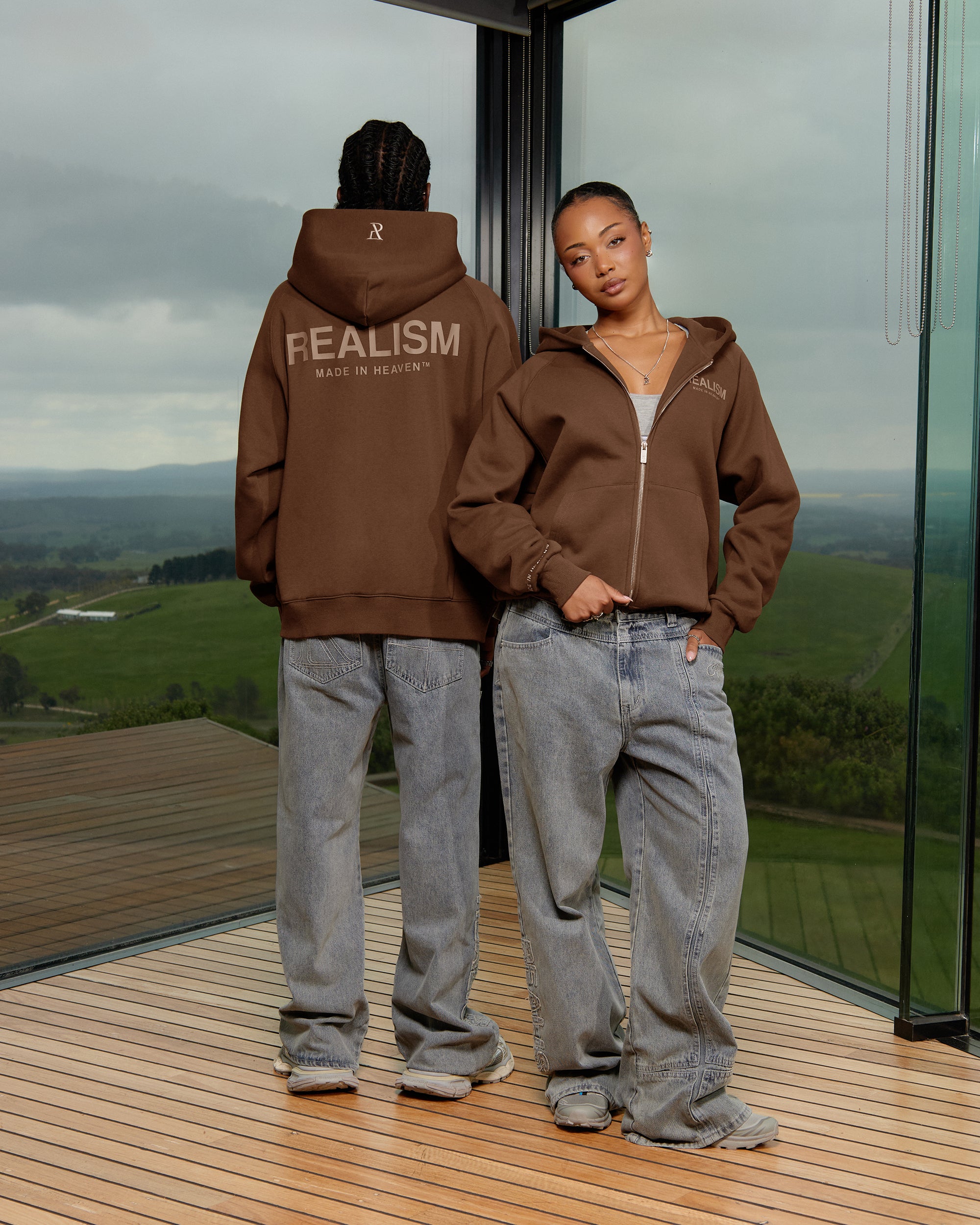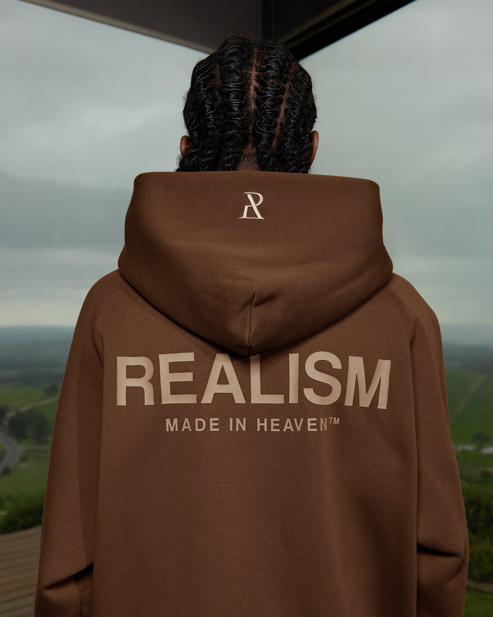 Meet the latest edition of the Heaven Logo Hoodie. Premium, comfortable, and designed with purpose. Featuring Realism's signature 350gsm fleece crafted into a raglan, oversized silhouette, this zip hoodie is accentuated with 3-dimensional silicone applique logos on the front and back. An embroidered "R" logo on the hood and a "Made in Heaven" motif on the right sleeve complete this iconic design.