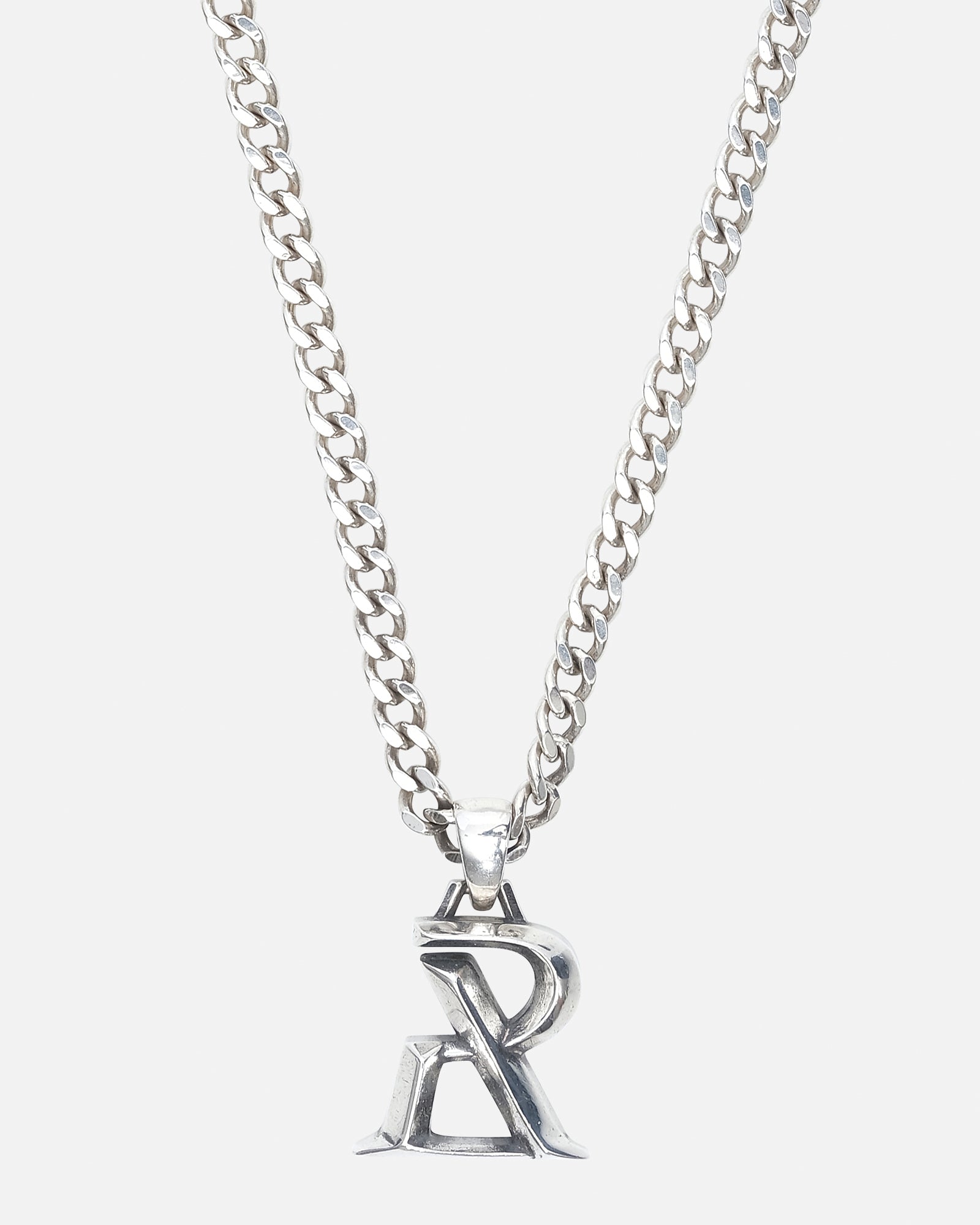 A refined essential. The Radiant Pendant Necklace features Realism’s signature “R” monogram, sculpted from premium 925 sterling silver and suspended from a cuban link chain. Clean lines and subtle dimensional shaping give the pendant its sharp, architectural presence striking enough to stand alone, yet minimal enough to layer effortlessly.