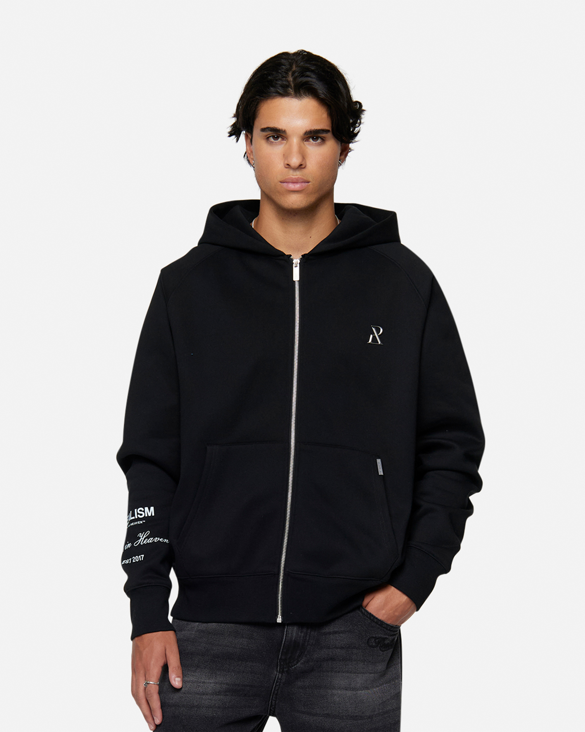 This staple zip hoodie is refreshed with a deluxe signature from the Realism Radiant collection. Made with Realism's signature comfy fleece in a oversized Storm guise, this zip hoodie features metal accents including custom "R" branded zips, chest emblem and tag. An embroidered "R" on the hood, silicon applique logo on the back and sleeve print ties together a design that captures the essence of premium loungewear.