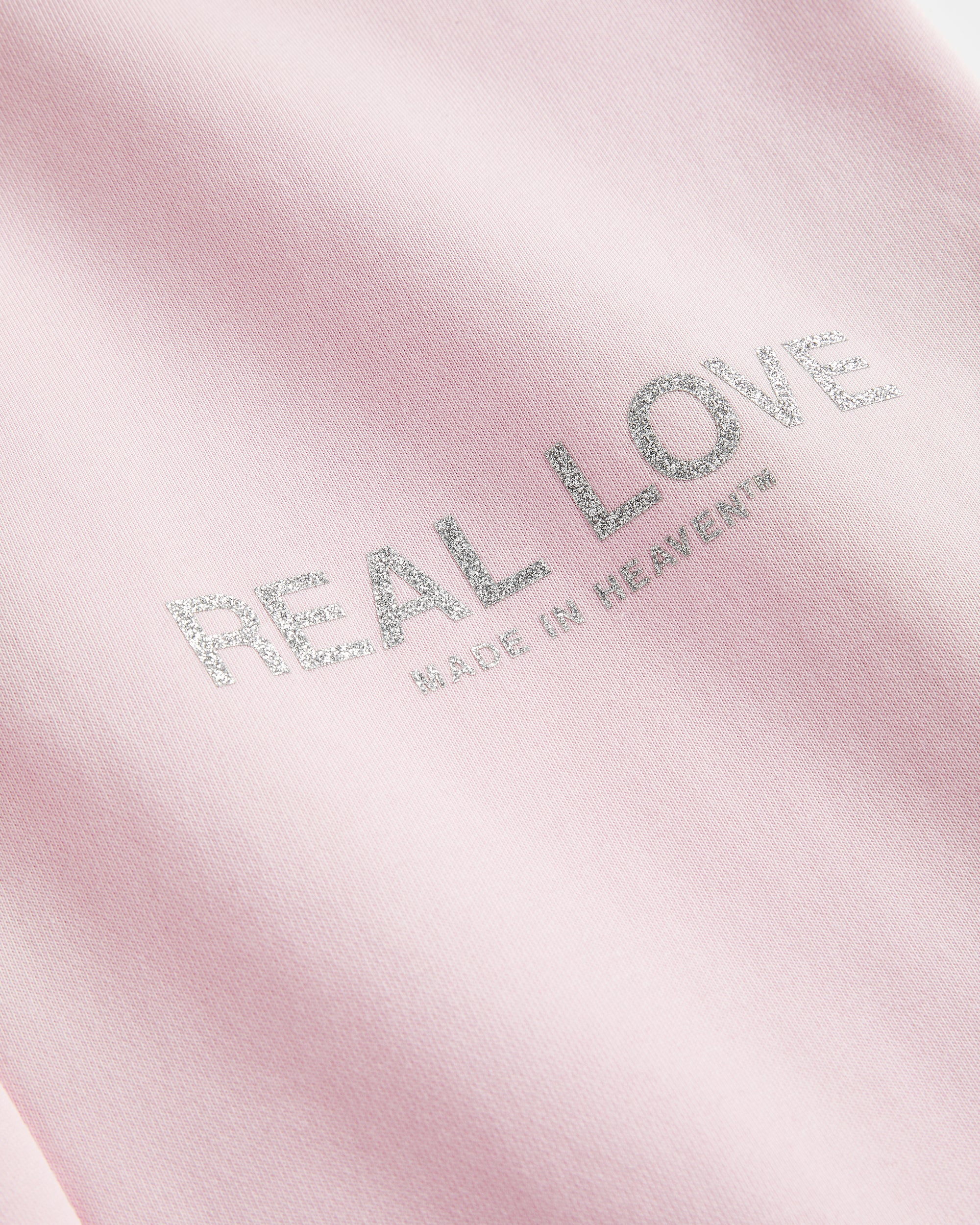 Made for off-duty moments this Valentine’s season, the REAL LOVE Sweatpants feature a shimmering glitter vinyl print. Designed in an oversized relaxed fit with a clean open leg silhouette, they deliver everyday comfort and are elevated with custom branded eyelets and aglets for a refined Realism touch.