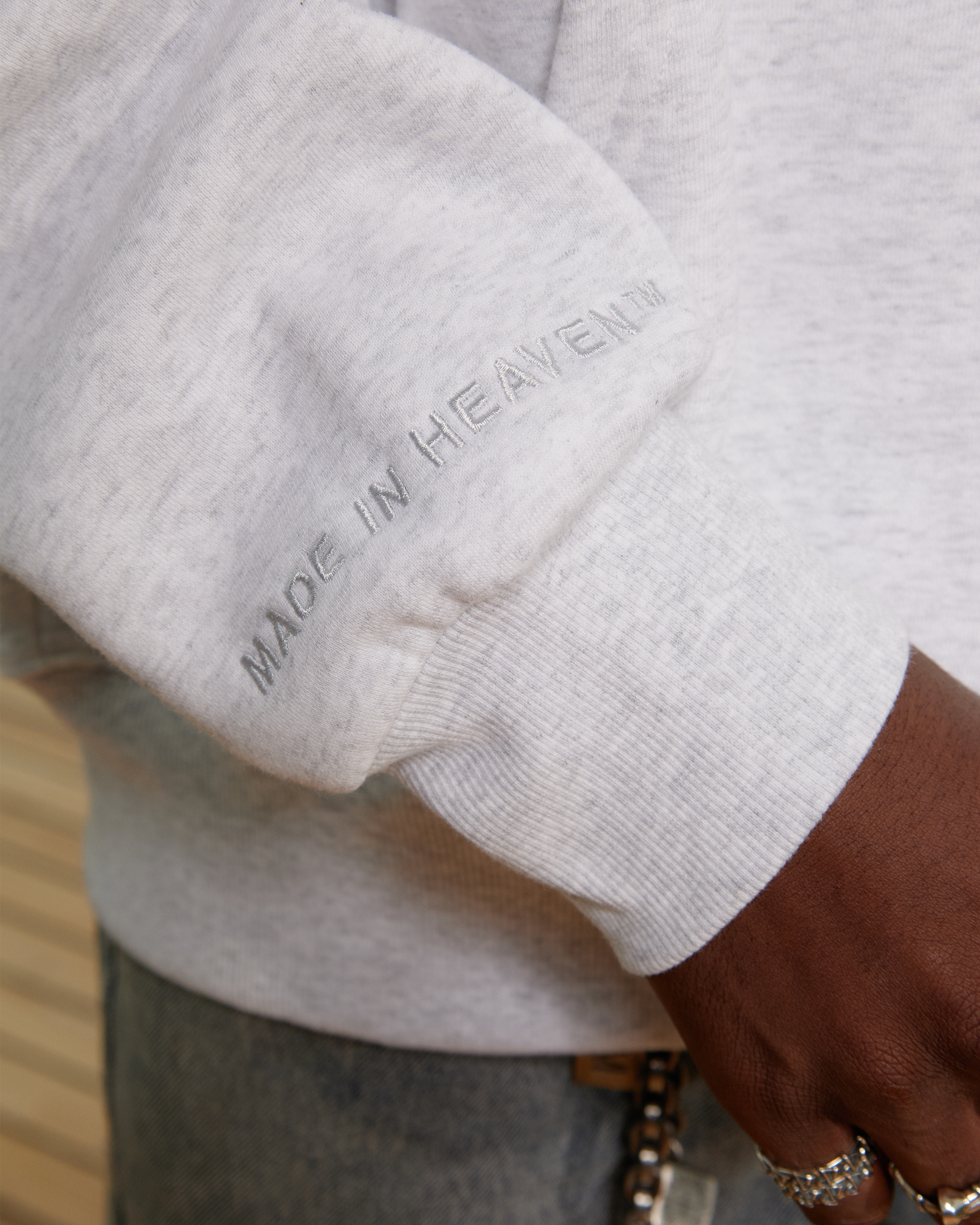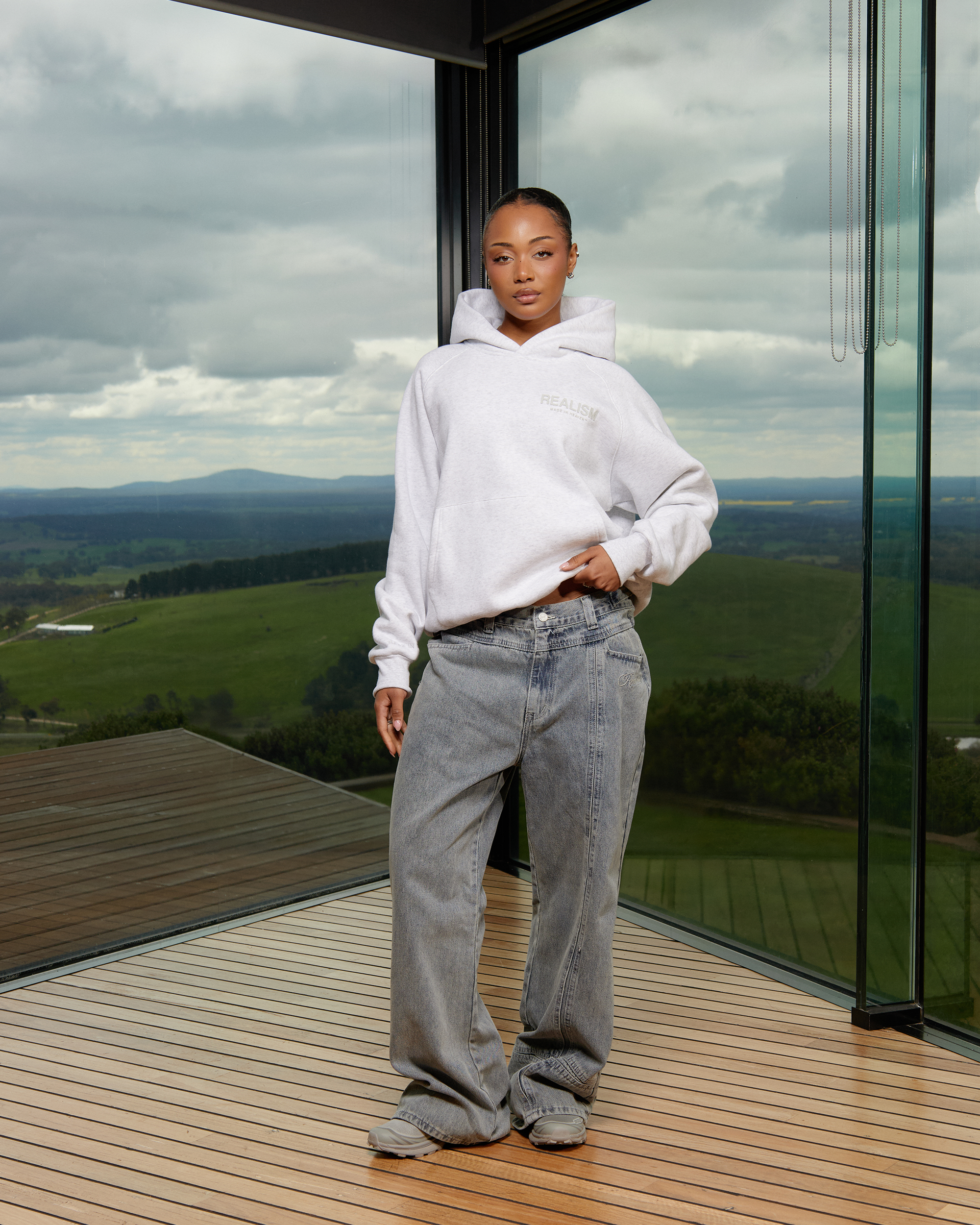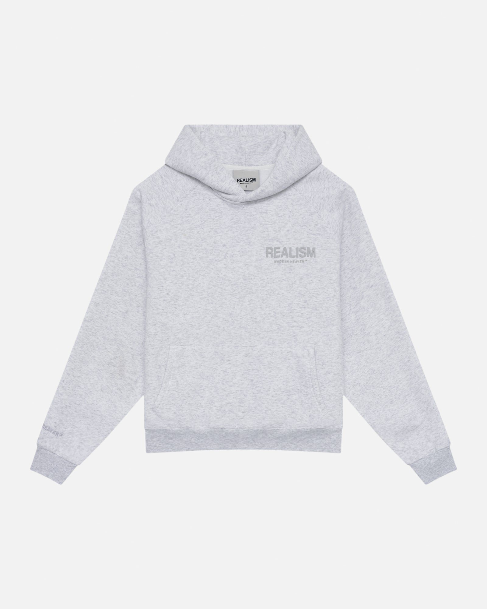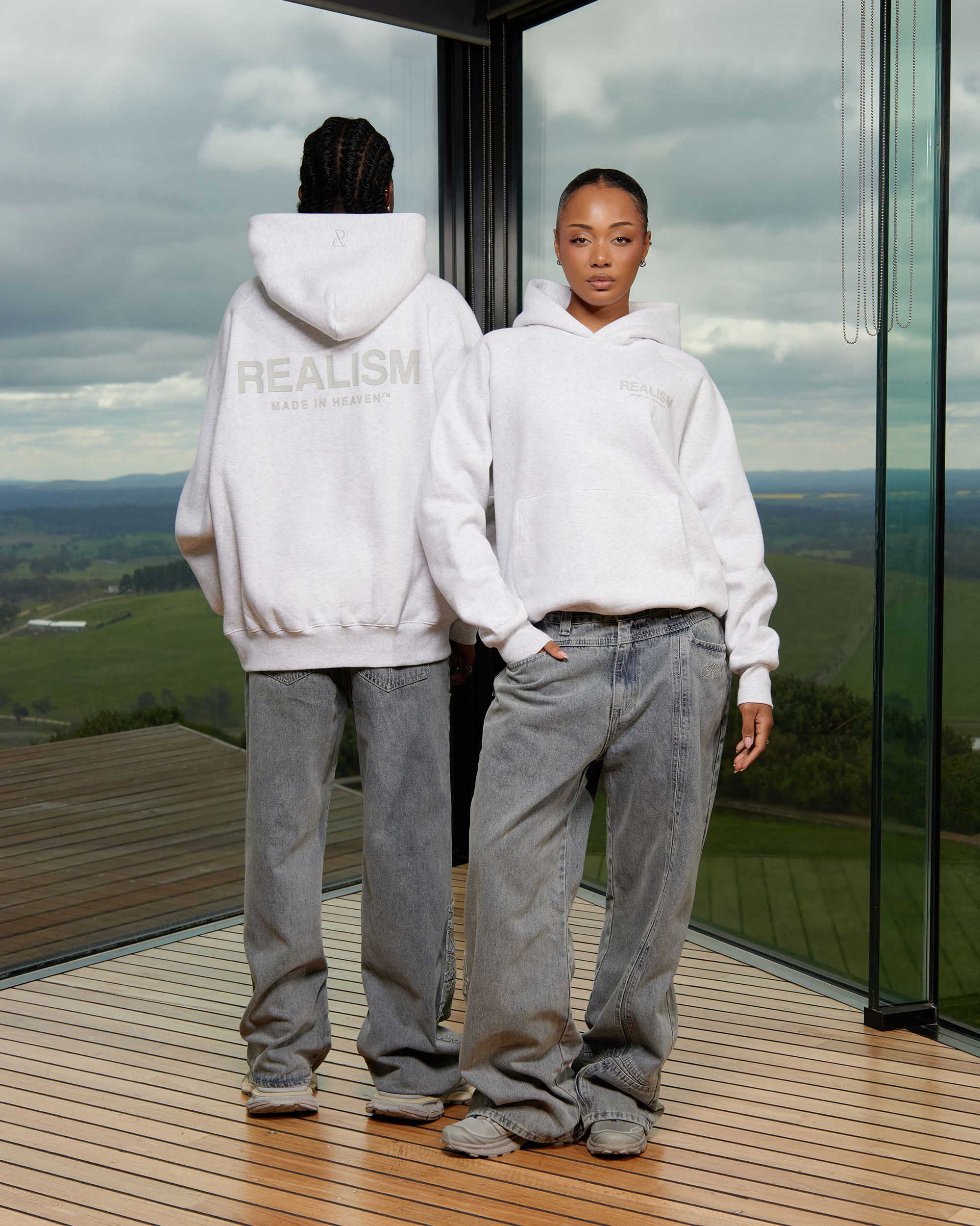 The ultimate hoodie. Premium, comfortable, and designed with purpose. Featuring Realism's signature 350 gsm fleece crafted into a raglan, oversized silhouette, this hoodie is accentuated with 3-dimensional silicone applique logos on the front and back. An embroidered "R" logo on the hood and a "Made in Heaven" motif on the right sleeve complete this iconic design.