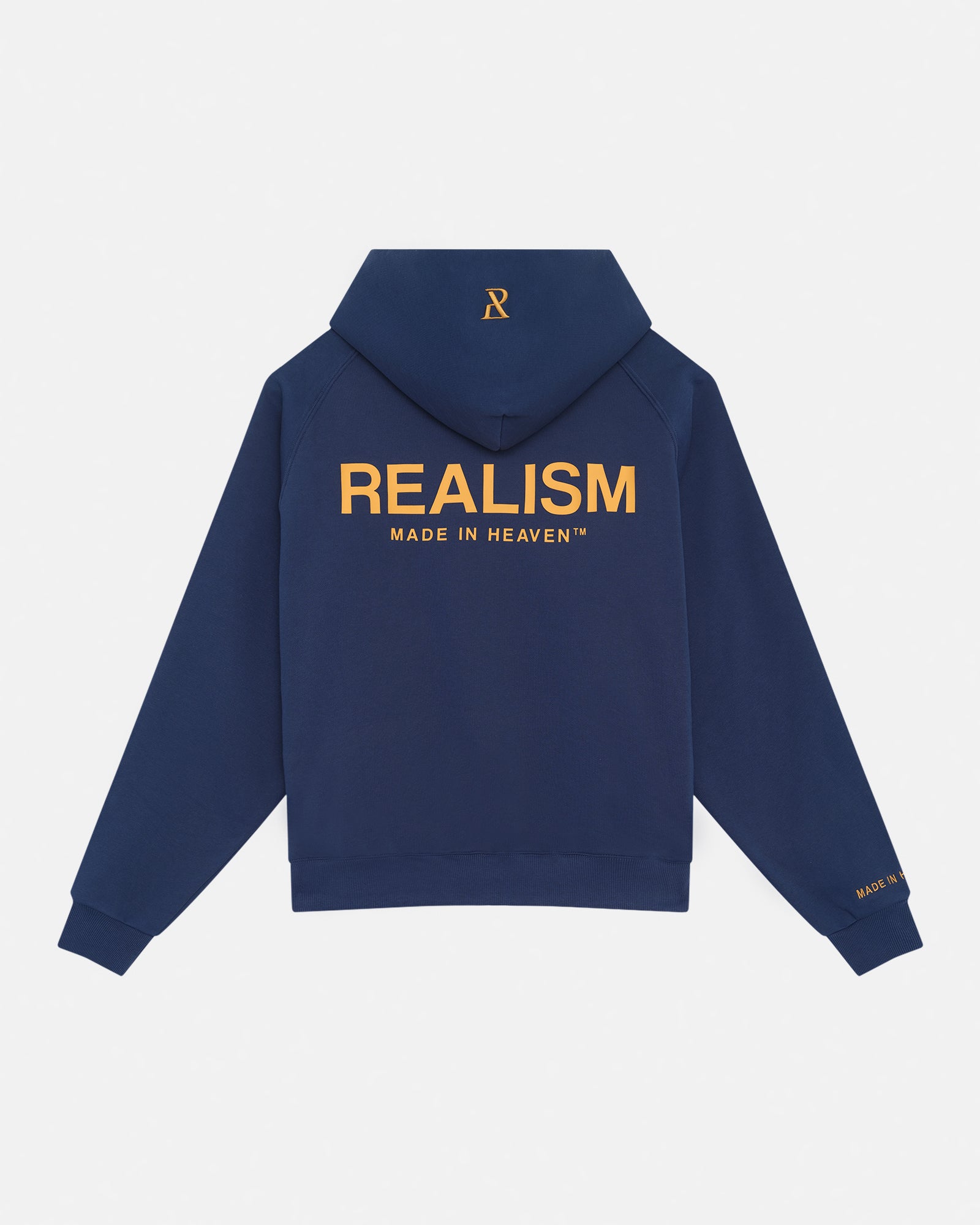Meet the latest edition of the Heaven Logo Hoodie. Premium, comfortable, and designed with purpose. Featuring Realism's signature 350gsm fleece crafted into a raglan, oversized silhouette, this zip hoodie is accentuated with 3-dimensional silicone applique logos on the front and back. An embroidered "R" logo on the hood and a "Made in Heaven" motif on the right sleeve complete this iconic design.