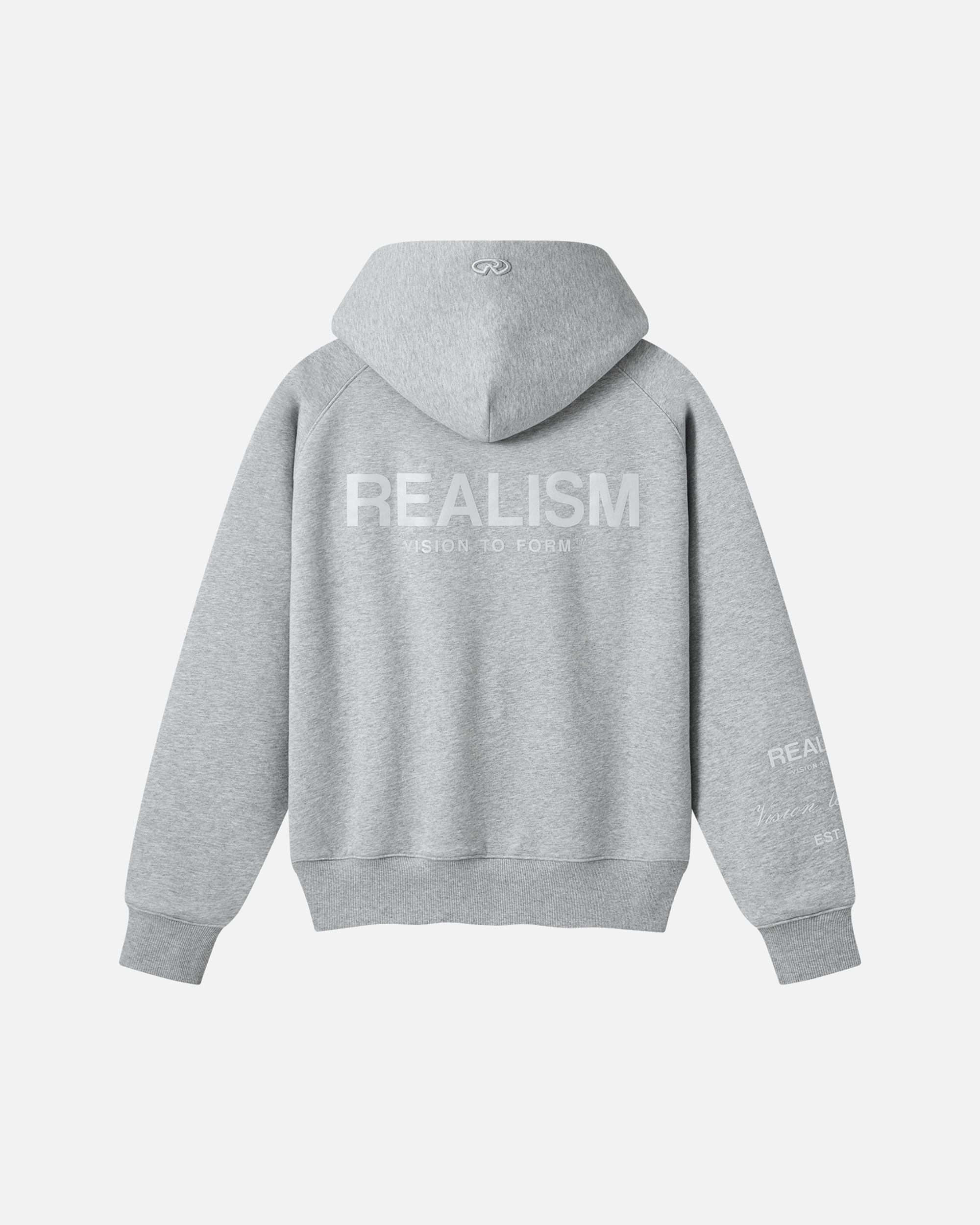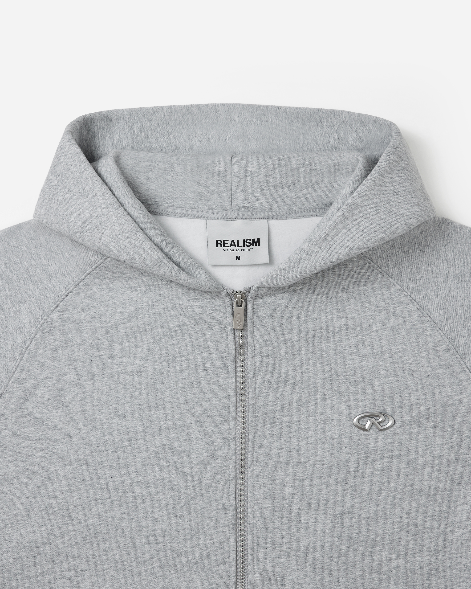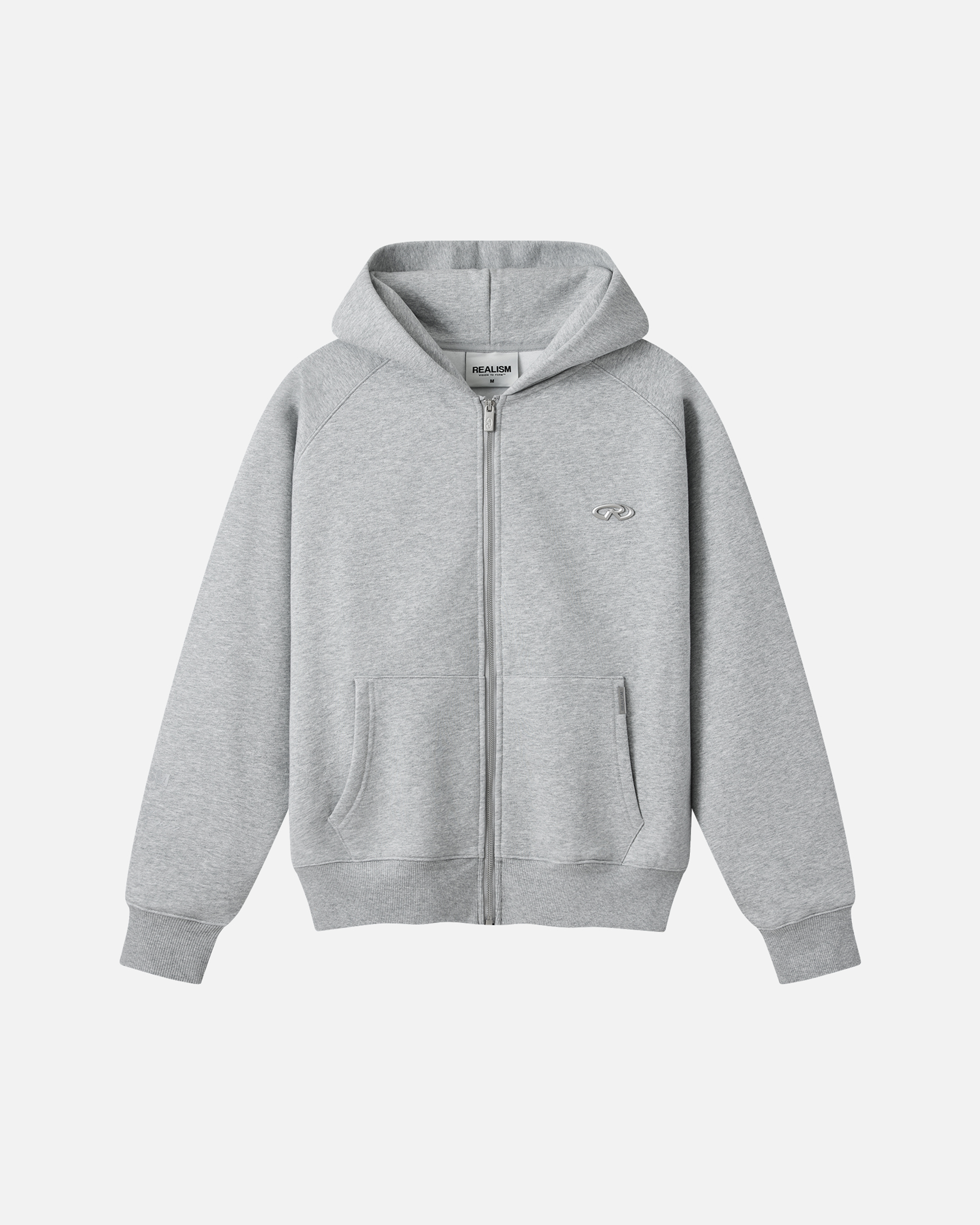 This staple zip hoodie is refreshed with a deluxe signature from the Realism Radiant collection. Made with Realism's signature comfy fleece in a oversized Grey Marle guise, this zip hoodie features metal accents including custom "R" branded zips, chest emblem and tag. An embroidered "R" on the hood, silicon applique logo on the back and sleeve print ties together a design that captures the essence of premium loungewear.